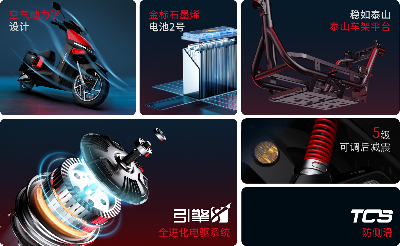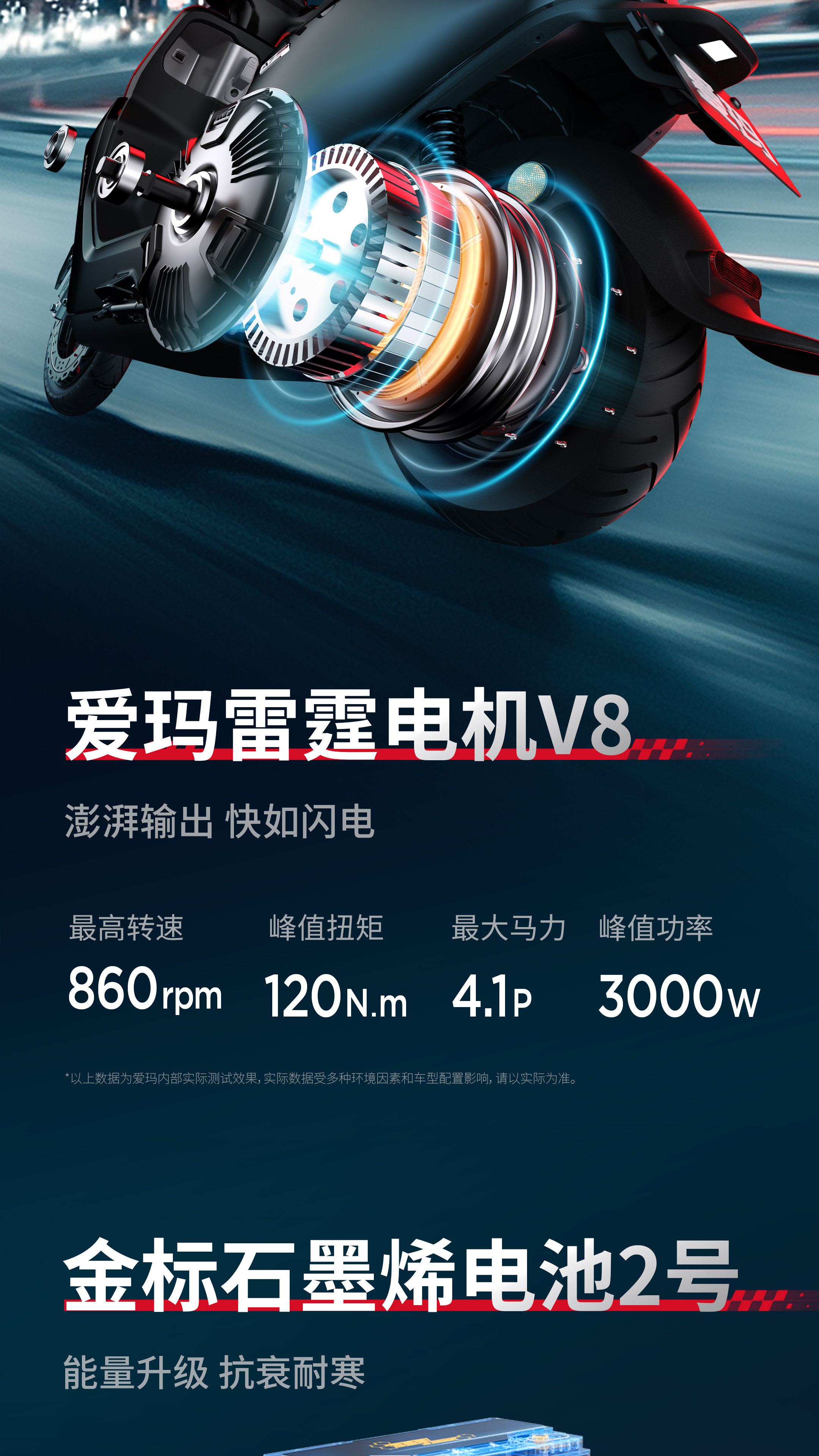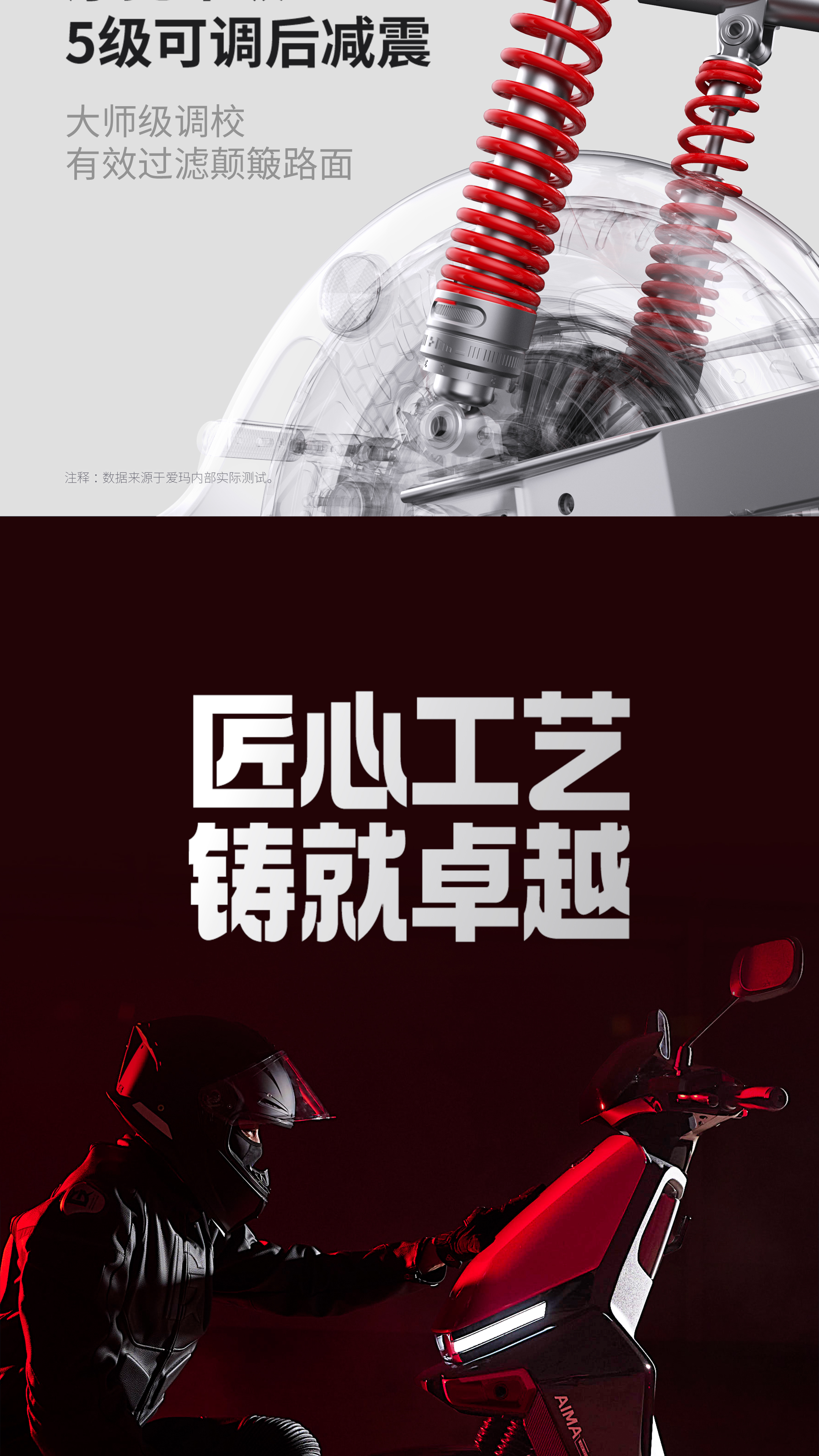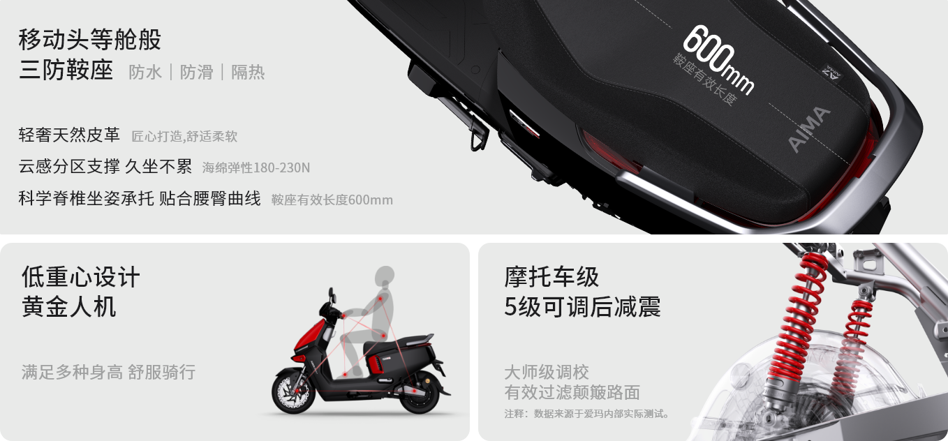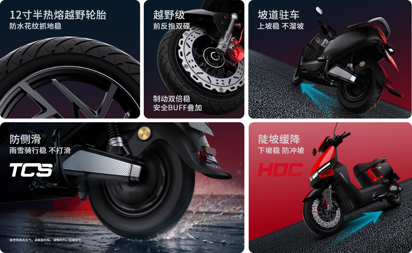 注釋2:【最高速度65km/h】指開云體育A7極速版開啟氮氣加速模式后,此模式下最高速度65km/h,持續時間為15s,實際騎行速度請根據當地道路標準。
